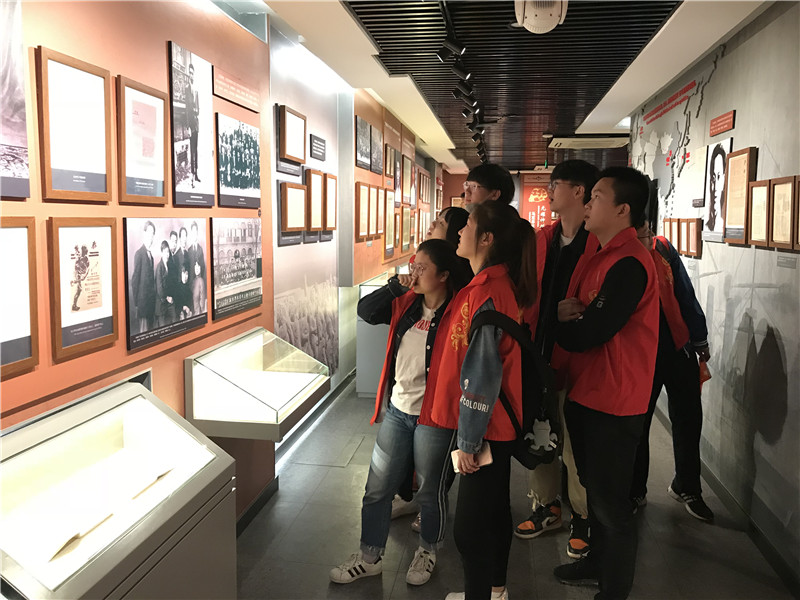 校團委鄭光老師為新團員佩戴團徽,寄語團員青年要認真學習習近平總書記在紀念五四運動100周年大會上的講話精神,做有理想、有擔當、有奮斗、有作為、有價值的新時代青年,讓青春在為祖國、為民族、為人類的奉獻中煥發出更加絢麗的光彩,以優異的成績慶祝中華人民共和國成立70周年。隨后,同學們參觀了沒有共產黨就沒有新中國紀念館。
