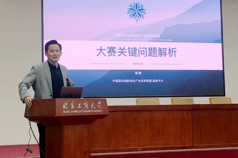 中國高校創新創業產業投資聯副秘書長、梧桐高創資本創始合伙人、教育部中國 “互聯網+”大學生創新創業大賽總決賽評委、第二屆/第三屆總冠軍項目創業導師、國內211、985院校的MBA導師、客座教授、特聘創新創業導師蔣楠先生,從通知發文要點解讀、組織備賽工作經驗、如何撰寫高質量的商業計劃書、如何做高質量的路演和答辯等四個方面對大賽關鍵問題進行了解析。