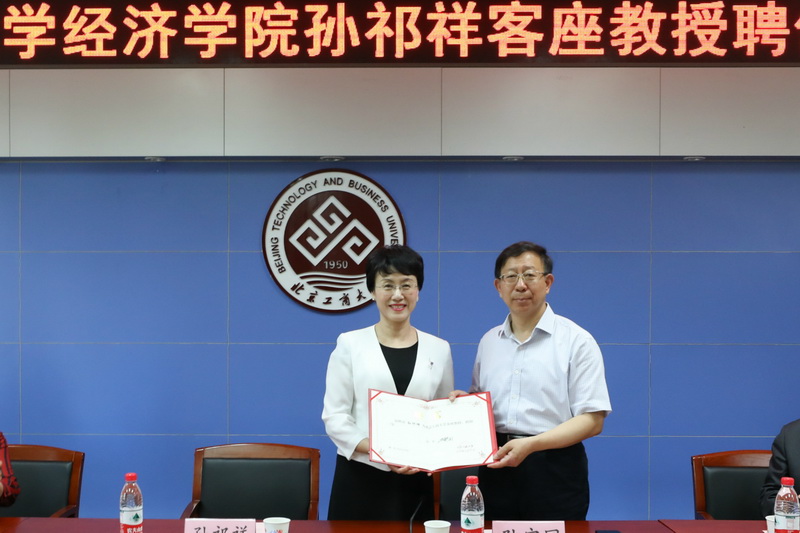 孫祁祥教授在致辭中表示,能夠被聘任為北京工商大學(xué)客座教授,倍感榮幸,也深覺責任重大,同時也對經(jīng)濟學(xué)院在應(yīng)用經(jīng)濟學(xué)博士點申報、北京市高精尖學(xué)科建設(shè)上取得的成績表示祝賀,她愿意盡全力繼續(xù)為學(xué)北京工商大學(xué)學(xué)科建設(shè)貢獻自己的力量。
