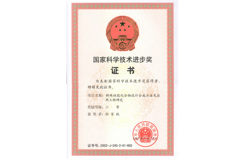 2003年2月28日,2002年度國(guó)家科學(xué)技術(shù)獎(jiǎng)勵(lì)大會(huì)召開(kāi),孫家躍教授主持的《特殊性能化合物設(shè)計(jì)合成方法及應(yīng)用工程研究》項(xiàng)目成果獲國(guó)家科學(xué)技術(shù)進(jìn)步二等獎(jiǎng)。
