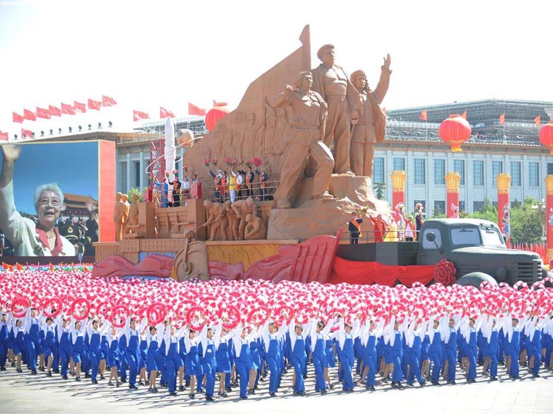100天的艱苦訓(xùn)練,238步的完美表演,成就了69秒的輝煌。2009年,根據(jù)北京市的要求和市委教育工委的安排,我校承擔(dān)3項(xiàng)新中國(guó)成立60周年慶祝活動(dòng)任務(wù),共選派2347名學(xué)生參加活動(dòng)。其中,選派2156名學(xué)生參加房山區(qū)群眾游行“艱苦創(chuàng)業(yè)”方陣,80名學(xué)生參加廣場(chǎng)合唱方陣,50名學(xué)生參加廣場(chǎng)聯(lián)歡方陣;另外還派出61名學(xué)生參加房山區(qū)長(zhǎng)陽(yáng)鎮(zhèn)的集體舞方隊(duì)。