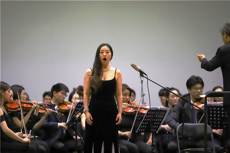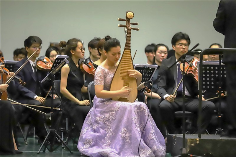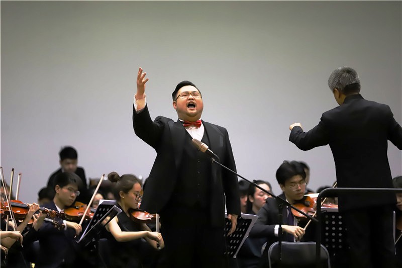 音樂會在莊嚴雄壯的《義勇軍進行曲》中拉開帷幕。中央音樂學院指揮系林濤教授帶領中央音樂學院百余名師生演繹了一場高水平的視聽盛宴。演奏的曲目既有《紅旗頌》、《白毛女》組曲、琵琶協奏曲《草原英雄小姐妹》、《紅色娘子軍》組曲等各個時期膾炙人口的紅色曲目,又有青年男女高音歌唱家演唱的《初心不改》、《我愛你中國》、《我和我的祖國》等愛國歌曲。柴可夫斯基國際音樂大賽歷史上最年輕的小提琴首獎獲得者陳曦用一首小提琴協奏曲《梁祝》為觀眾講述了一個婉轉動人的愛情故事,或舒緩或疾馳的演奏給同學們帶來了藝術美的享受。最后,全場千余名師生起立,齊聲高唱《歌唱祖國》,將整臺音樂會推向高潮。音樂會在熱烈的掌聲中和意猶未盡中落下帷幕。