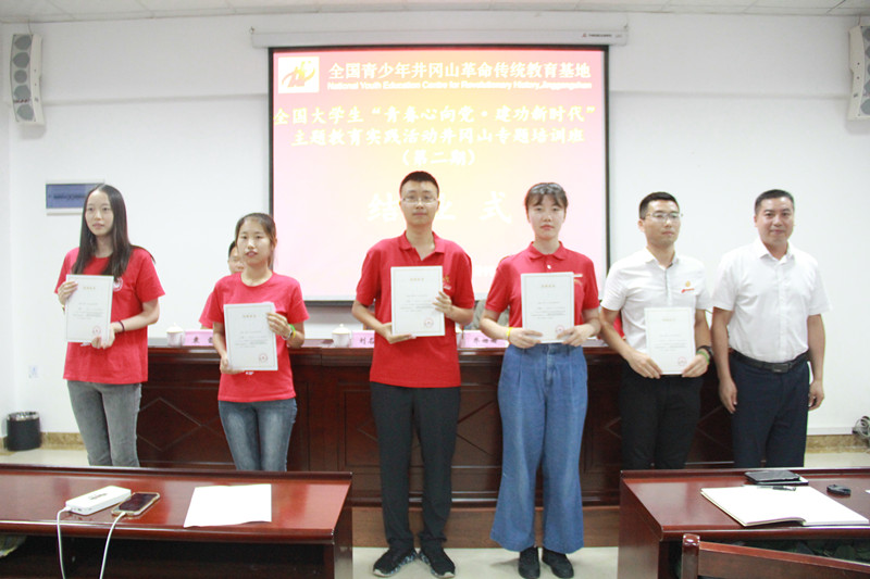 7月27日,實踐團成員參加了結業儀式,全國青少年井岡山革命傳統教育基地管理中心后勤處副處長劉名教出席結業儀式并為學員頒發結業證書。