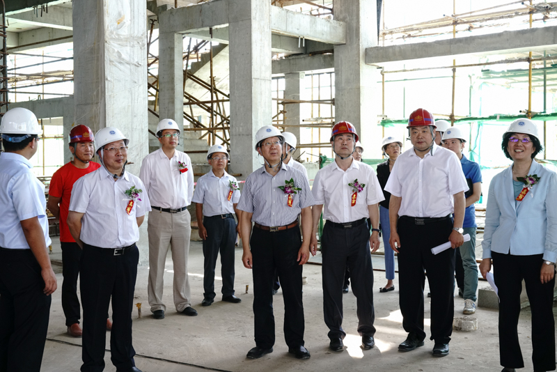 封頂儀式后,各位領導和嘉賓代表參觀了學生食堂和學生活動中心的建設情況。本項目涵蓋16-02-01和16-02-04兩地塊內容,分別為01地塊學生食堂和學生活動中心主體建筑和04地塊足球場和400米田徑場內容,食堂及活動中心共計建筑面積16030.5㎡,地下一層,地上三層,局部四層。根據設計方案,可容納約1400人就餐及600人觀演。