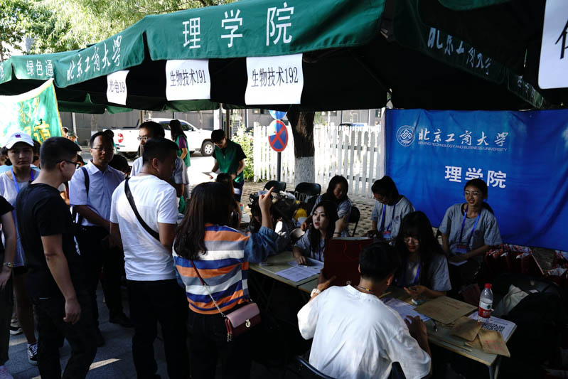 理學院迎新志愿者全部由黨員、發展對象和積極分子組成,突顯黨員先鋒帶頭作用。數學與統計學院邀請新生在學校標志性建筑前與家人留下一張合影,記錄下他們進入大學校門的第一張笑臉、在北工商留下的第一個足跡。食品與健康學院的迎新工作者們從阜成路校區趕到良鄉迎接新生,他們笑容滿面,熱情洋溢地為新生們指路解惑。輕工科學技術學院為身殘志堅的同學提供細致周到的服務。材料與機械工程學院設置了新生留言板,讓學生們寫下對大學生活的美好祝愿。計算機與信息工程學院14位班主任全部到場,積極參與各項迎新工作,在學習、專業、生活等各方面給予學生們親切指導。