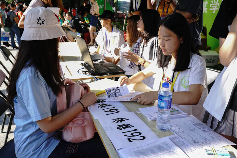 清晨7時許,設置在校園道路兩旁的新生綠色通道服務臺、綜合咨詢臺、各學院的迎新報到點、家長休息區的工作人員和志愿者都已準備就緒;保衛處工作人員忙碌地疏導著新生報到的車輛,迎新擺渡車也早早在地鐵站等候新生的到來。新生和家長們提著大大小小的行李箱,陸陸續續走進學校。迎新現場的工作有條不紊地展開,一線的迎新工作者們熱情高效地幫助新生完成報到流程。