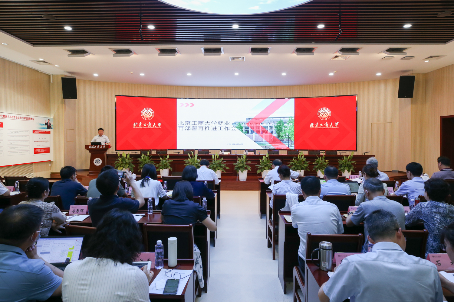 黃先開作總結講話。他強調,就業工作是民生工程,就業質量是學校辦學水平、人才培養質量、學校聲譽的重要體現。各部門、各學院要以本次會議為新起點,統一思想、提高認識、形成合力、攻堅克難。第一要提高站位,高度重視。要深入落實教育部、北京市部署要求,切切實實把畢業生就業工作作為重中之重,作為黨政一把手工程來推進。各部門、各學院要出真招、辦實事、見實效,把做好2023屆畢業生就業工作作為學習貫徹習近平新時代中國特色社會主義思想主題教育走深走實的現實行動。第二要全力以赴,落實落細。加強就業崗位挖掘力度,精準分類開展就業指導,摸清底數建立臺賬,層層壓實、責任到人,抓住重點、突破難點。第三,系統謀劃,深化改革。高質量就業是高質量發展的內涵,要深化人才培養和管理體制機制改革,創新形式、協同推進,提升學生就業競爭力。第四,嚴守紀律,準確統計。嚴格遵守就業統計紀律,落實教育部提出的“四不準”“三不得”要求,做好畢業生就業工作。希望各部門、各學院齊心協力,做好就業再推進工作。