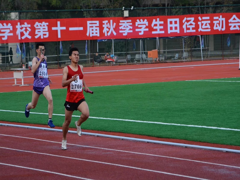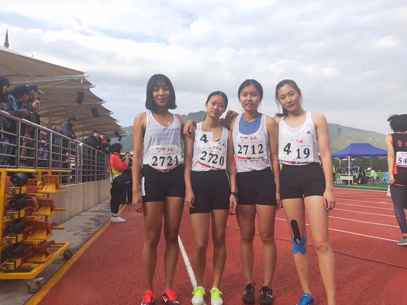 在為期兩天的比賽中,魏靜、于洪、邵喆三位教練帶領運動員克服天氣、傷病等問題,奮力拼搏,為校爭得了多項榮譽。計信學院大一新生徐萌在女子乙組鉛球比賽中,以10.60米的成績一舉拿下冠軍;五項全能比賽中,計信學院徐蘇洋(男)、王雪涵(女)雙雙奪得冠軍;由經濟學院鄭鑫艷、數(shù)統(tǒng)學院楊千葉、藝傳學院曹冰嬋、商學院葉禹彤組成的接力隊伍繼續(xù)蟬聯(lián)女子乙組4×100米冠軍;商學院永皓華、數(shù)統(tǒng)學院楊千葉、藝傳學院曹冰嬋、商學院葉禹彤組成的4×400米隊伍奪得女子乙組冠軍;數(shù)統(tǒng)學院周菁獲得女子乙組跳遠第二名;數(shù)統(tǒng)學院楊千葉獲得女子乙組100米第二名、200米第二名;藝傳學院的曹冰嬋獲得女子乙組跳遠第三名、三級跳遠第三名;商學院王融獲得女子乙組跳高第三名。在團體項目中由計信學院楊明雨,牛垚,徐蘇洋,侯焱組成的男子4×100隊伍獲得乙組第二名;商學院王恩煥,計信學院牛垚,楊明雨,李漢強在男子乙組4×400接力獲得第八名。成績的取得離不開教練的悉心指導,離不開隊員們平時訓練灑下的汗水。