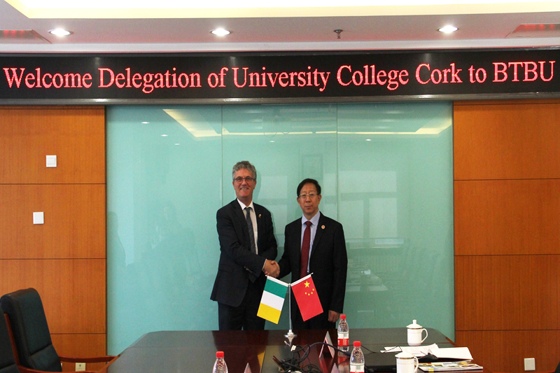 10月21日上午,愛爾蘭國立考克大學常務副校長約翰·哈羅蘭(John O'Halloran)一行四人訪問我校。孫寶國校長在阜成路校區會見了代表團一行,會談由謝志華副校長主持。