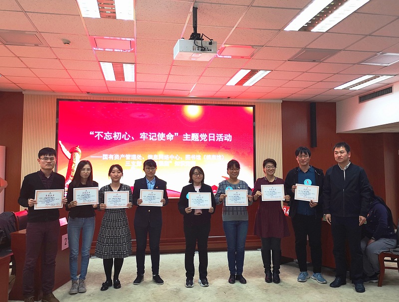 為深入學習習近平新時代中國特色社會主義和黨的十九大精神,切實開展“不忘初心、牢記使命”主題教育活動,10月23日下午,圖書館(檔案館)、國有資產管理處、信息網絡中心黨支部聯合開展“學習強國”知識競賽。