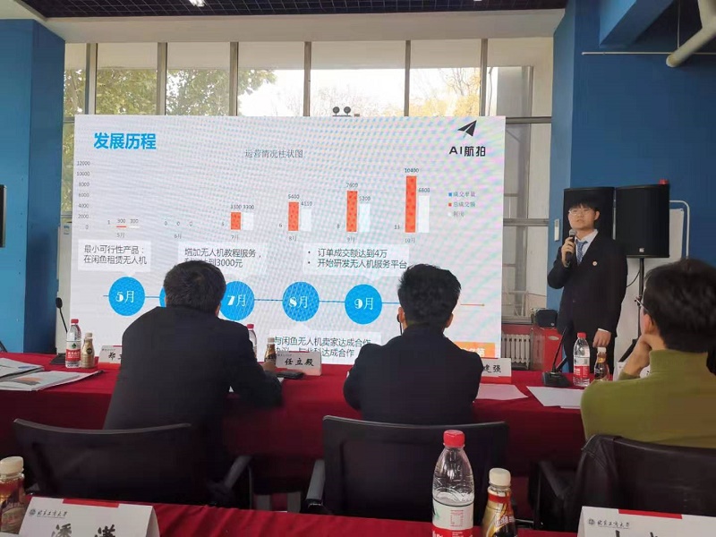 此次比賽共報名創新創業項目47個,其中創業項目31個,科技創新項目16個,并于10月中旬和下旬開展了初審、創業項目復賽和科技創新項目決賽,最終有10支團隊進入決賽,學生創業團隊在評審會上分別對創業項目進行了精彩展示。數媒161班的張須帶來了 “三千頁”項目,致力于傳承中國傳統文化的現象級國潮IP,保護瀕危傳統文化,為其注入時代新元素,以年輕人喜歡的方式呈現,讓更多人知道和保護我們優秀的傳統文化并引以為豪。至今已有5年創業經驗并且創辦了北京天星互娛文化傳媒交流有限公司的連續創業者,計研1822班的蔡添帶來了“Stars Game-時尚KOL養成”平臺項目,作為時尚類為主的MCN機構,通過系統化養成式管理,打造時尚KOL,孵化培養優質內容創造者,為今日頭條、抖音、微博等平臺輸出優質內容,實現電商變現、品牌推廣等價值。人力172班張軒睿的“跟我走”AR導航項目結合AR技術以及Zigbee定位技術,設計出一款應用于大型景區或者購物中心的導航應用系統,使人們可以方便快捷的看到并準確抵達目的地。該項目精準定位市場痛點,將AR技術引入新的領域,解決人們的實際需求。