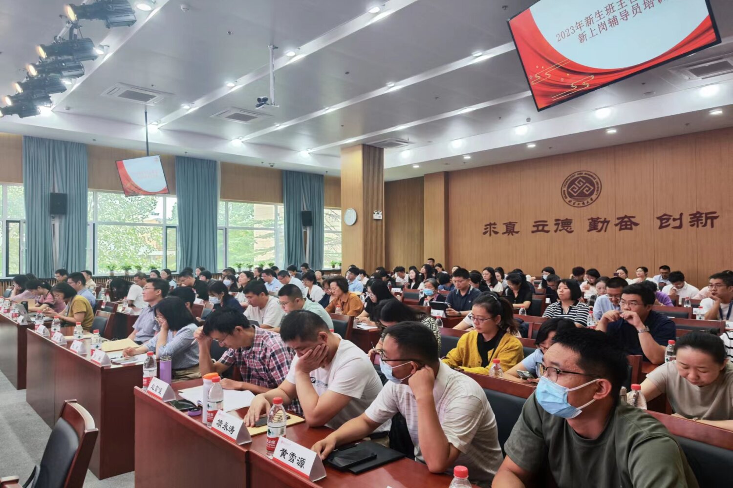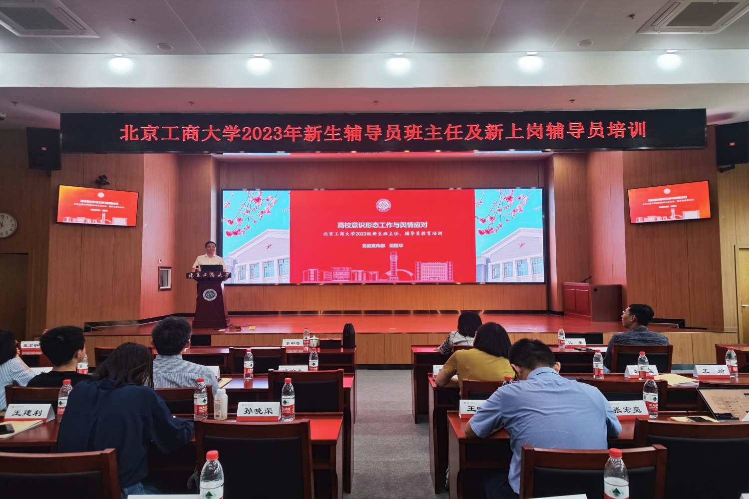 8月31日,學(xué)校2023年新生班主任輔導(dǎo)員培訓(xùn)在阜成路校區(qū)舉辦。本次培訓(xùn)內(nèi)容涵蓋學(xué)工隊伍落實立德樹人的使命擔(dān)當(dāng)、優(yōu)秀班主任工作經(jīng)驗分享、大學(xué)生心理健康教育、意識形態(tài)工作與輿情應(yīng)對、階梯式思想政治教育及迎新工作安排等,來自各學(xué)院的130余名新生班主任、輔導(dǎo)員,以及2023年新上崗的輔導(dǎo)員參加培訓(xùn),會議由學(xué)生處處長呂良主持。