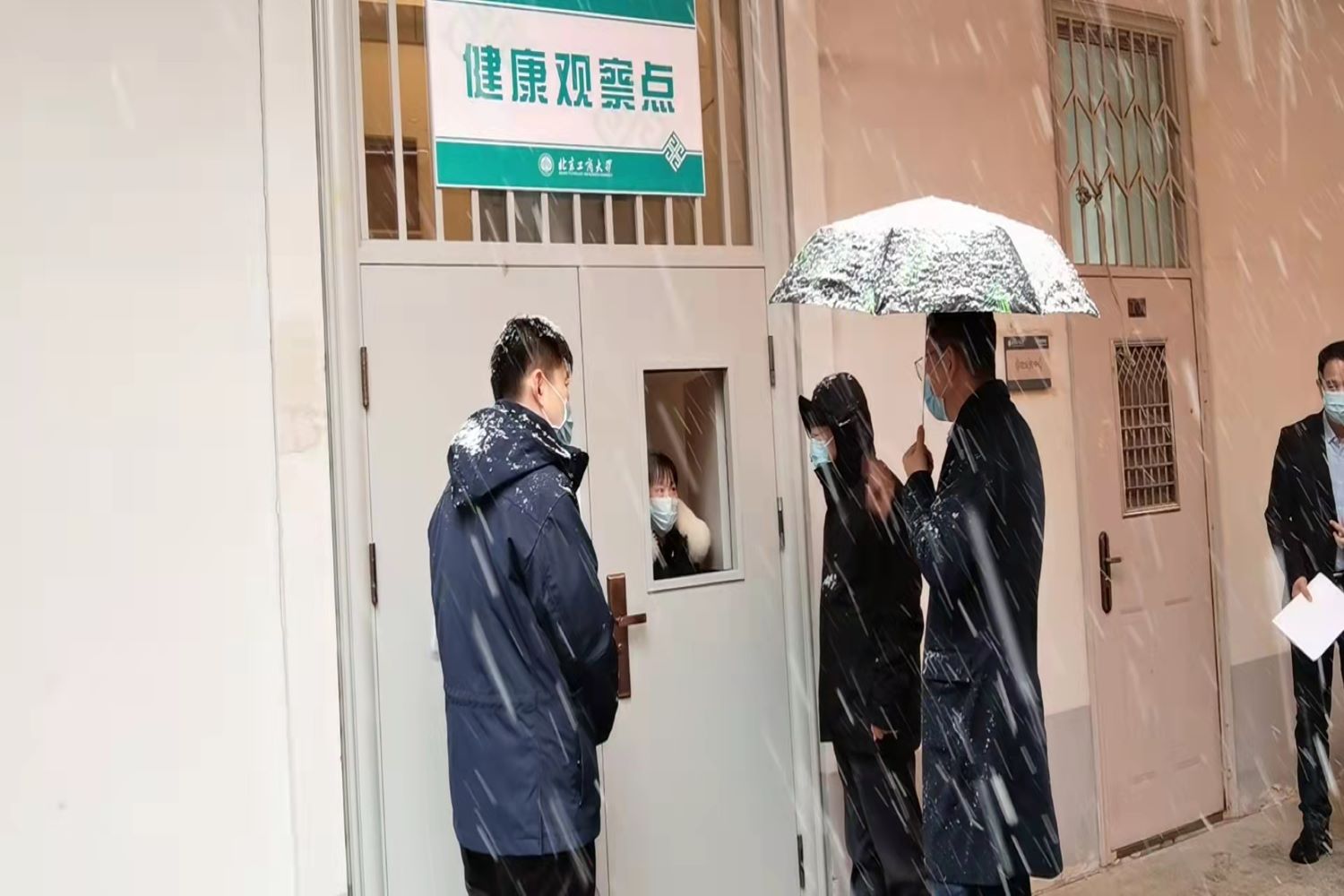 孫其軍對學校疫情防控工作表示肯定,強調要堅持校園封閉式管理,壓實“四方責任”,落實“四早”要求,從嚴從緊開展疫情防控工作,切實做好各項防控措施落實落細。孫其軍指出,要強化對重要點位、重要區域、重要人員的疫情防控,統籌做好疫情防控和人文關懷,及時了解師生訴求,讓疫情防控有溫度更有力度,嚴防死守,筑牢疫情防控安全線。