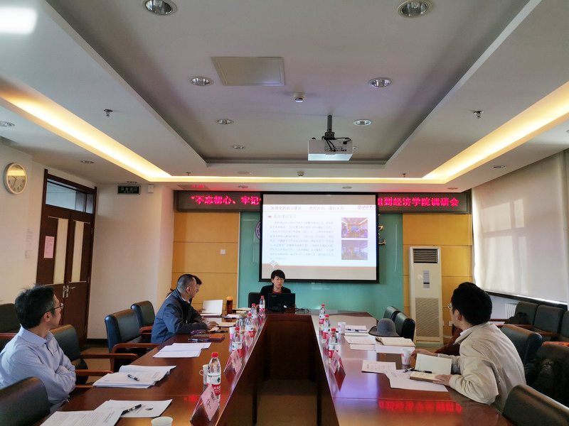 11月19日上午,市委第十二巡回指導組赴經濟學院調研“不忘初心、牢記使命”主題教育工作。巡回指導組成員于群、李艷秀出席調研。學院黨委書記呂素香、副書記杜亞輝、副院長張偉、寧威,金融系黨支部宣傳委員郭娜、學院本科生黨建輔導員單紫薇參加調研活動。會議由學院黨委書記呂素香主持。
