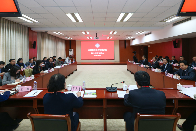 上午,學校在阜成路校區召開本科教學工作審核評估整改情況說明會。校領導黃先開、孫寶國、張德玉、歐陽媛、張耘、賈英民、方德英出席會議。全體中層正職、各學院(部)教學副院長、校級本科督導專家代表、教師代表等參加會議。