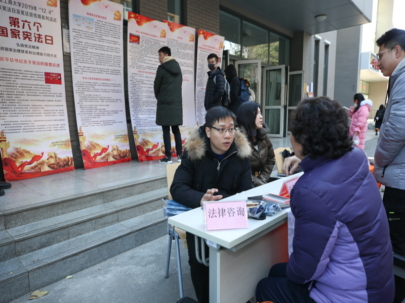 12月4日至8日,由我校法學(xué)院舉辦的“憲在行動(dòng),憲法日校園宣傳”主題活動(dòng)在阜成路校區(qū)和良鄉(xiāng)校區(qū)正式開展,校區(qū)內(nèi)各處可見憲法宣傳主題展板和橫幅,法學(xué)院學(xué)生向師生分發(fā)憲法知識(shí)手冊(cè)、講解憲法知識(shí)、開展趣味有獎(jiǎng)問答,法學(xué)院教師還進(jìn)行現(xiàn)場(chǎng)法律咨詢、答疑解惑,系列活動(dòng)培育了濃厚的校園憲法文化,提升了師生憲法知識(shí)水平,推動(dòng)全校進(jìn)一步形成了解憲法、崇尚憲法、遵守憲法、貫徹執(zhí)行憲法的良好氛圍。