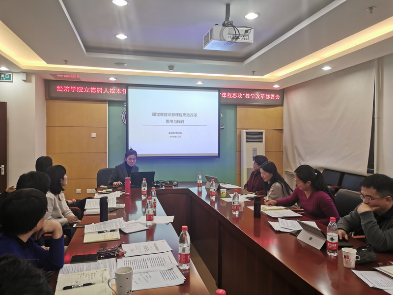 會(huì)議依照學(xué)校《關(guān)于在“不忘初心、牢記使命”主題教育中開展立德樹人根本任務(wù)“大學(xué)習(xí)大討論大落實(shí)”的實(shí)施方案》要求,組織大家就習(xí)近平總書記有關(guān)立德樹人的講話進(jìn)行了學(xué)習(xí),對(duì)各黨支部下一步的工作提出了要求。呂素香解讀了《經(jīng)濟(jì)學(xué)院加強(qiáng)課程思政建設(shè)工作方案(討論稿)》,提出確立課程思政建設(shè)試點(diǎn)課程、探索課程思政實(shí)施路徑、建立課程思政案例庫等任務(wù)要求,力求依托經(jīng)濟(jì)學(xué)學(xué)科優(yōu)勢(shì),結(jié)合專業(yè)特色和課程特點(diǎn),從中國(guó)特色社會(huì)主義經(jīng)濟(jì)的歷史、規(guī)律出發(fā),以代表性案例和規(guī)范的經(jīng)濟(jì)學(xué)語言在課堂上傳播中國(guó)歷史文化,解讀中國(guó)經(jīng)濟(jì)發(fā)展,講好“中國(guó)故事”,通過課堂主渠道幫助學(xué)生樹立正確的歷史觀、世界觀、價(jià)值觀、人生觀。