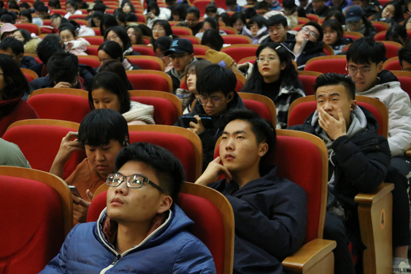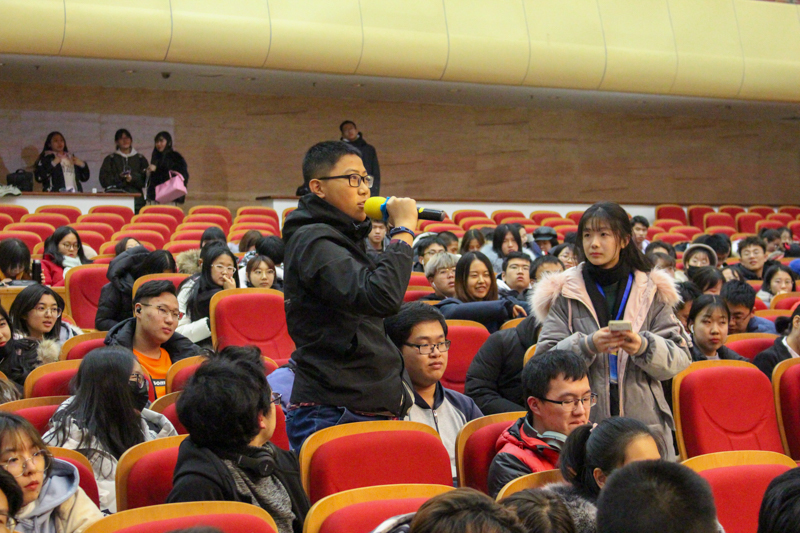12月12日,杜凡由《道德經》對“道”的定義講起,從“何為老子的道”、“老子的道所認為的世界觀”與“如何用道家思想‘修身、齊家、治國、平天下’”三方面展開生動有趣的講解。他結合《道德經》中“道大”與“玄德”的選段和親身事例,具體而生動地闡釋了“道之源”。隨后他向大家展示三幅道家的十二辟卦圖,以道家“剝卦”、“複卦”的循環相生,闡釋了“道”運動的規律。“道之形”的講解更是引起了同學們的興趣,“道即為妙,妙不可見”是他鞭辟其形后的最終總結。他將《道德經》中關于“柔剛”、“勇怯”、“有無”、“雌雄”、“巧拙”篇目進行詳細地講述,中肯切實地向同學們解釋了“道”的辯證世界觀。他提到,萬物之內皆有“陰陽相生,剛柔并濟”,這是中國人內化的精神。經過他幽默風趣的話語,同學們對“中華民族在面對苦難時何以永遠充滿希望,何以堅忍不拔”的概念有了更深刻的理解。講座接近尾聲,杜凡以“以道修身、以道養身”點名了道在今日的重要作用。道之自然之氣,道之平衡之感,道之無為之神是修身、齊家、治國、平天下的至高境界。最后,他總結道:“有才之人,內斂而成大事。”將老子的道的思想轉化于生活點滴之中,相信“道”之美會令同學們受益終生。