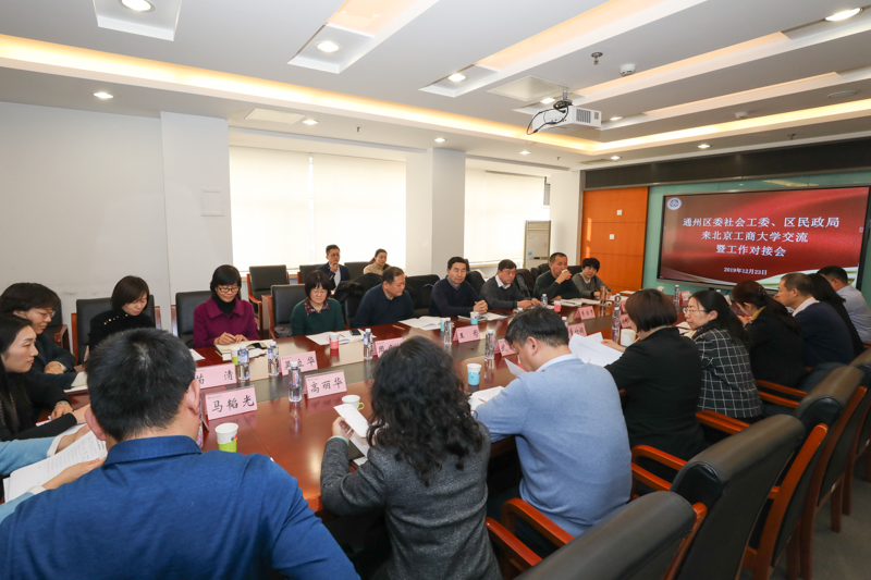 通州區委社會工委副書記李宗秀介紹區委社工委、區民政局基本情況。我校研究生院院長徐丹丹介紹了學校學科建設、研究生人才培養、社會服務等情況;科技處處長左敏介紹了我校科研項目、科研成果及與副中心相關的在研課題情況;學生處處長呂良從支部共建、學生實踐等領域展望了合作領域和對接形式。藝術與傳媒學院黨委書記高麗華、法學院黨委書記馬韜光、商學院黨委書記張春萍分別介紹了本學院的學科專業情況,表示會充分發揮學院優勢開展與通州社會工委、民政工作的合作與對接。
