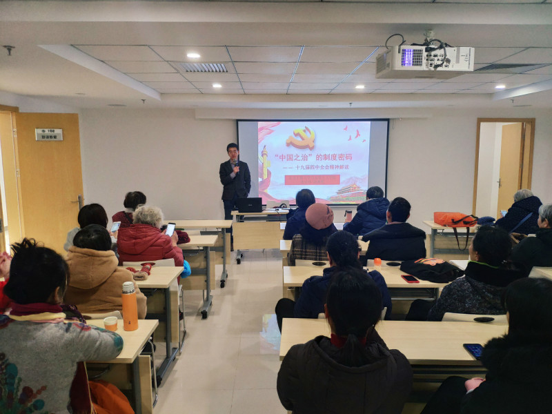 12月11日下午,馬克思主義學院院長助理、副教授袁雷赴北京乾成律師事務所開展以“加強制度建設,推進四個偉大”為題的首場宣講。12月24日,學院院長王魯娜在2019年我校教師理論培訓班上為全校青年教師做了題為“發揮制度優勢、堅定制度自信”的專題報告,副院長姚洪越與大家交流了深入學習習近平同志關于民族宗教工作重要論述的體會;同日,學校舉行《致知學堂》第二十五講講座,院長助理張彥琛以“學習貫徹黨的十九屆四中全會精神,堅定中國特色社會主義制度自信”為題為全校學生作報告,引領同學們學習貫徹黨的十九屆四中全會精神,堅定中國特色社會主義制度自信,學校本科生、研究生800余人聆聽了宣講;此外,由15名學院專業教師組成的宣講團赴北京經濟技術開發區新時代文明實踐中心開展了20余場黨的十九屆四中全會精神特色宣講活動。老師們深入改革發展和生產生活的第一線,宣講單位包括亦莊開發區的政府機關、國有企業、民營企業和街道社區。基層群眾普遍反映宣講形式生動活潑,宣講內容詳實深入,契合大家的理論學習需要,解答了大家的思想困惑。