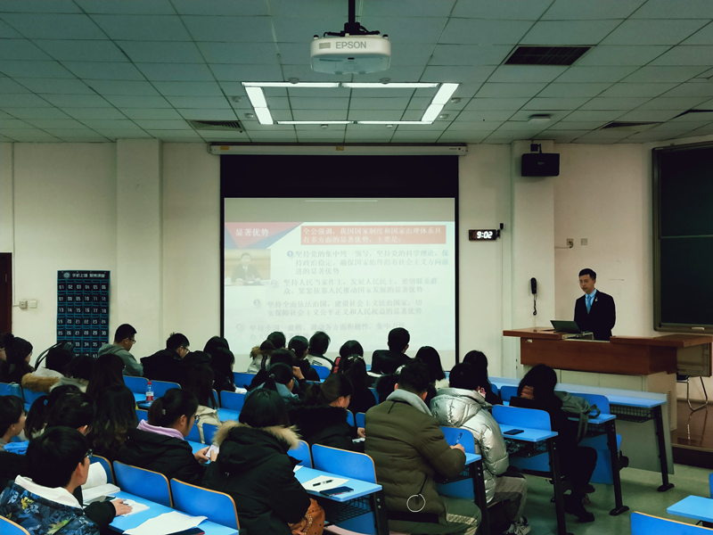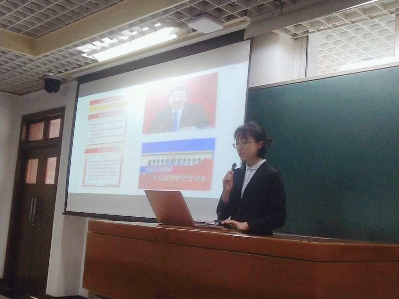 黨的十九屆四中全會是在慶祝新中國成立70周年的重要節(jié)點,是在向全面建成小康社會、實現(xiàn)第一個百年奮斗目標(biāo)邁進的關(guān)鍵之年召開的一次重要會議,是一次對國家制度和國家治理體系問題進行開創(chuàng)性研究和系統(tǒng)性解決的中央全會。學(xué)生工作部“不忘初心、牢記使命”主題教育宣講團,在前期集中學(xué)習(xí)十九屆四中全會精神的基礎(chǔ)上,精心準(zhǔn)備了宣講材料,宣講員分別從制度構(gòu)建、優(yōu)勢解讀、政策構(gòu)成、實施路徑等維度結(jié)合實例進行了展示。經(jīng)濟學(xué)院的宣講員王慧妍從聚焦教育制度發(fā)展的角度,通過回溯新中國教育成就,展示了中國共產(chǎn)黨發(fā)展為了人民的核心要義,發(fā)問式的互動形式引起了聽眾的深入思考,聽眾認(rèn)識到了中國的發(fā)展離不開黨的領(lǐng)導(dǎo)、教育的進步更離不開黨的政策支持。外國語學(xué)院的宣講員尤露則把“十三個顯著優(yōu)勢”作為了講述重點,結(jié)合國情實例,把精準(zhǔn)扶貧、兩一百年目標(biāo)融入其中,把集中力量辦大事的大工程、大事業(yè)說明白,激發(fā)了聽眾強烈的自豪感,堅定了跟黨走,努力學(xué)習(xí)建設(shè)偉大祖國的信心。