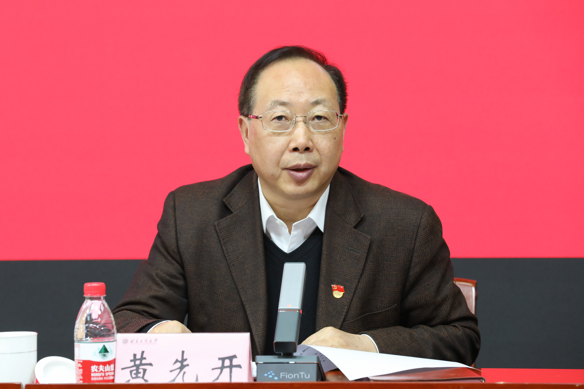 黃先開書記代表學校黨委從主題教育總體情況、主要成效、存在的問題與不足、鞏固和拓展主題教育成果四個方面總結了學校主題教育相關情況。黃先開書記表示,按照中央及市委統一部署,9月初,學校“不忘初心、牢記使命”主題教育全面展開。四個月來,在北京市委第十二巡回指導組的悉心指導下,學校黨委堅持把主題教育作為當前首要政治任務,以學習貫徹習近平新時代中國特色社會主義思想為主線,聚焦守初心、擔使命,找差距、抓落實的總要求,結合學校實際,統籌推進、分類指導,高質量完成了各項任務。