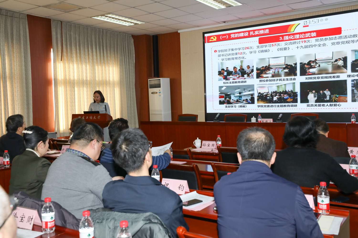 根據市委組織部、市委教育工委部署和學?!?019年度基層黨建述職評議考核工作實施方案》的具體安排,在述職評議會上,17位基層單位黨組織書記先后以文稿演示的形式進行現場述職。作為本單位抓基層黨建工作第一責任人,主要圍繞以釘釘子精神打好高校黨的政治建設攻堅戰、組織實施“不忘初心、牢記使命”主題教育、深入推進習近平新時代中國特色社會主義思想“三進”工作、落實高校黨建工作20項重點任務、服務保障國慶70周年慶?;顒?、嚴格落實意識形態工作責任制、深化落實全面從嚴治黨主體責任、突出履行基層黨建工作責任、對接《北京工商大學2025行動計劃》和學校2020年十大重點工作任務等方面的履職情況與成效進行了全面匯報,認真剖析了存在問題,提出了下一步工作思路和措施。