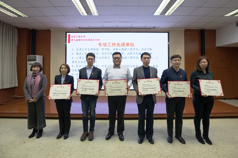 隨后表彰了優秀輔導員、十佳輔導員大賽前三名。根據學工部、研工部、招生就業處的考核安排和細則標準,最終評選出學生工作先進單位以及專項工作先進單位和個人(名單附后)。出席會議的學校領導和嘉賓為獲獎單位和個人頒發了獎項。