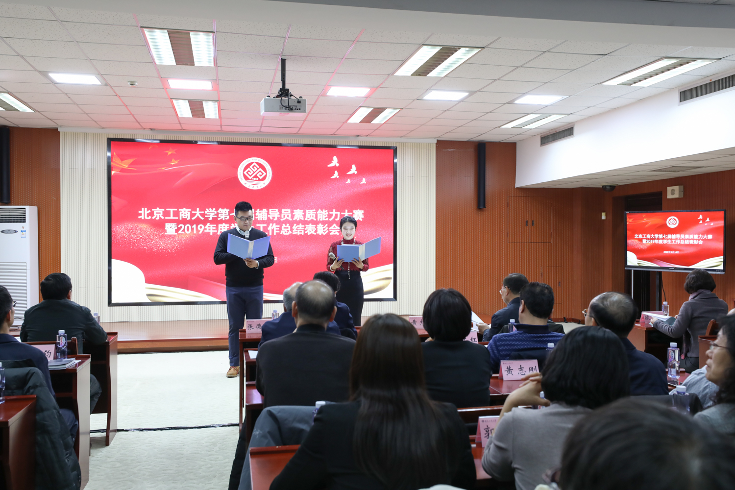 1月14日晚,學校舉辦第七屆輔導員素質能力大賽暨2019年度學生工作總結表彰會。校黨委書記黃先開、校黨委副書記張德玉、紀委書記歐陽媛、副校長張耘、鄭文紅以及學校思想政治工作(三全育人)領導小組成員、學工部、研工部、招生就業處、團委成員以及各學院副書記、全體輔導員參加。北京市委教育工委宣教處處長寇紅江、教育部高校輔導員培訓和研修基地依托單位、北京師范大學學工部部長隋璐璐作為特邀嘉賓出席活動并做大賽評委。