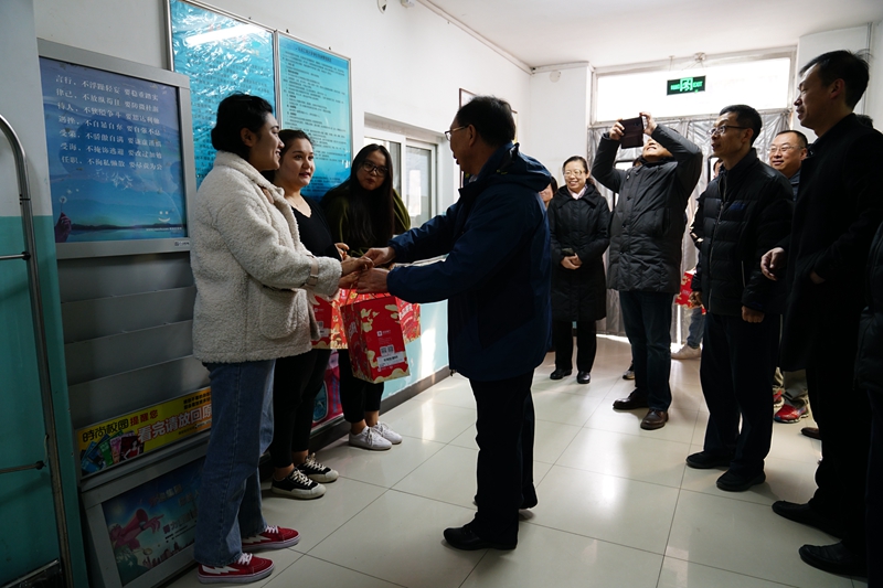1月24日上午,正值大年三十,黨委書記黃先開、副校長方德英代表學(xué)校黨委和行政在阜成路校區(qū)親切慰問后勤、保衛(wèi)、學(xué)生等部門值班老師和留校學(xué)生。