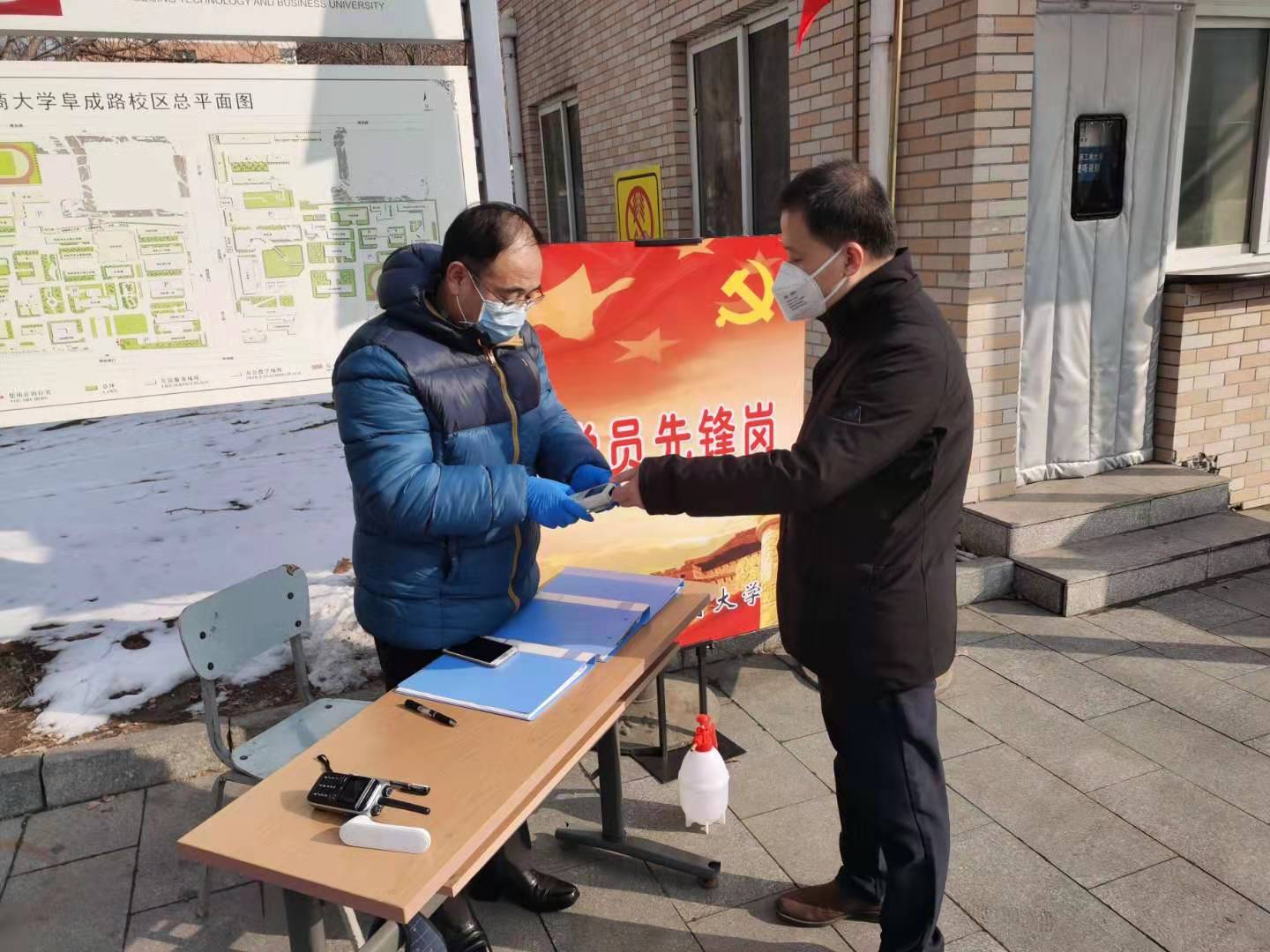1月23日,校園安全防護專班關閉阜成路校區部分大門,實行除校園師生員工外,其它人員與車輛一律不得入校、入校人員必須體溫監測的管控要求,各大門加派雙崗執勤,強化工作力量。1月26日,按照學校疫情防控專項工作領導小組決定,僅開放阜成路東西校區大門,其它所有校門、通道實施封閉,嚴格執行逢車必檢、人車同檢的要求。2月2日,校區大門升級管理措施,嚴格落實本校人員進校“持證件、測體溫、戴口罩”三者俱全、一切校外人員及車輛禁止入校的要求,切實守好筑牢疫情防控的第一關。