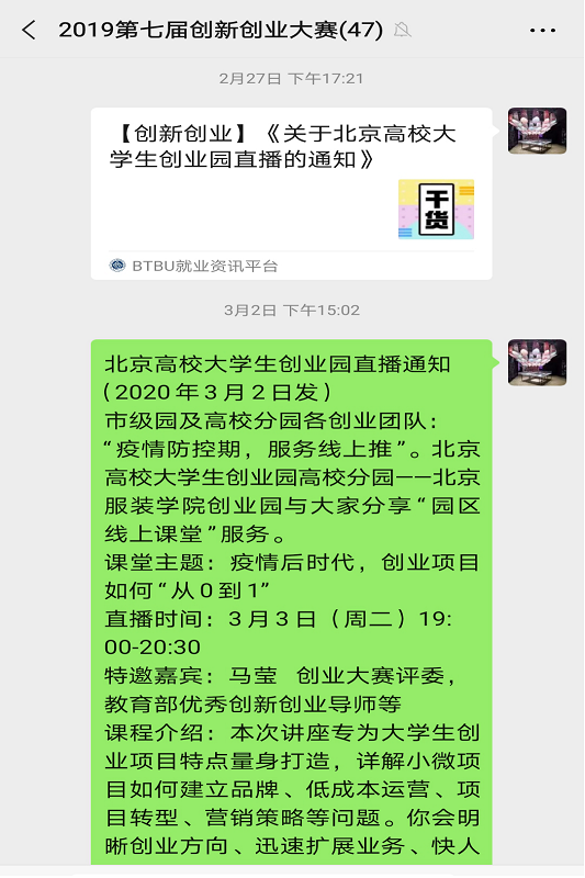 疫情期間,通過北京市大學(xué)生創(chuàng)業(yè)園云課堂、以及各分園分享的線上講座等活動共計20余場,包括“疫情下半場--大學(xué)生創(chuàng)業(yè)項目生存指南”、“疫情后時代--創(chuàng)業(yè)項目如何“從0到1”、創(chuàng)新創(chuàng)業(yè)大賽專題系列等內(nèi)容,通過線上云課堂直播的形式,豐富學(xué)生創(chuàng)新創(chuàng)業(yè)知識儲備,提升學(xué)生創(chuàng)新創(chuàng)業(yè)能力。
