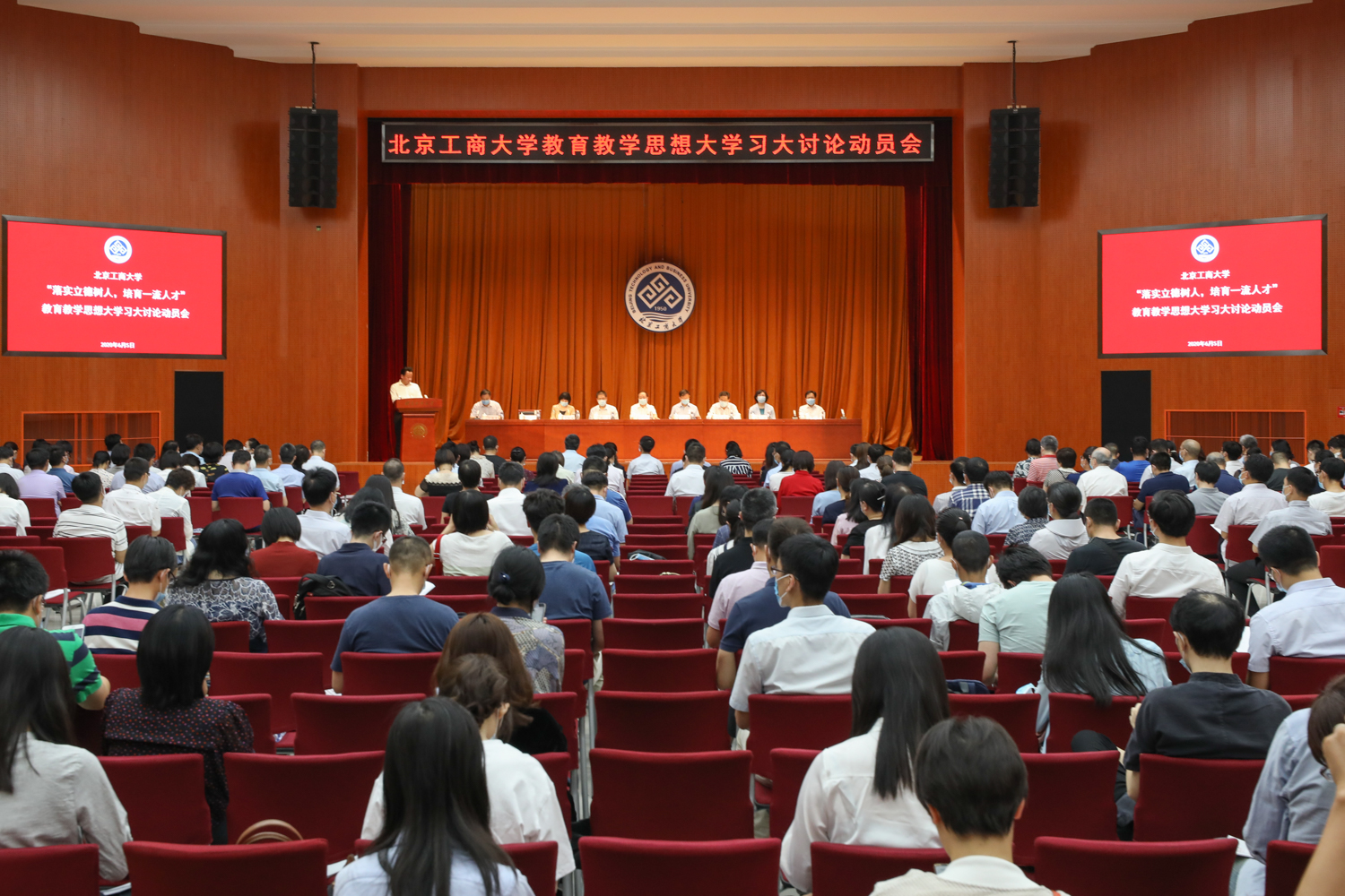 黨委書記黃先開作總結講話,強調了開展教育教學思想大學習大討論的重要意義,指出學校開展“落實立德樹人、培育一流人才”為主題的教育教學思想大學習大討論,是建設高水平研究型大學的需要,是服務國家發展戰略、服務首都“四個中心”建設的需要,是推動學校轉型發展、特色發展、創新發展的需要。黃先開書記提出了開展此次教育教學思想大學習大討論的總體要求,要堅持以習近平新時代中國特色社會主義思想和黨的十九大、十九屆二中、三中及四中全會精神為指導,深入學習貫徹習近平總書記關于北京教育的重要論述,全面貫徹黨的教育方針,堅持社會主義辦學方向,緊緊圍繞首都城市戰略定位,努力培養德智體美勞全面發展的社會主義建設者和接班人,為建設國際一流的和諧宜居之都提供強大的人才智力支撐。此次教育教學思想大學習大討論要以堅持問題導向、目標導向、結果導向為基本原則,立足回答好三個問題為主要任務:一是回答好培養什么樣的人、怎樣培養人、為誰培養人這個根本問題。各單位各崗位都要反思在思想觀念上是否已經轉變到圍繞高水平研究型大學建設上來,正確把握“育人”與“育才”的關系,肩負起新時代賦予教育“為黨育人、為國育才”的崇高使命,始終堅持立德樹人根本任務,貫徹落實全員全程全方位育人。二是要回答好高水平研究型大學創新型人才培養目標和創新人才培養模式問題。深入學習把握什么是創新型人才,學習借鑒國內外大學改革創新探索,要立足當前和著眼長遠相結合,深入思考和實踐辦成一所什么樣的大學,形成北工商創新型人才培養模式改革思路。三是要回答好新時代新要求下教學管理創新的問題。要將教學管理作為系統工程,認真研究新時代新要求下的教學管理,推動管理創新,加強干部隊伍建設。