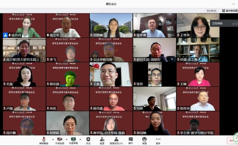 本次培養方案評審會分理工、經管和文法組進行。評審會邀請了中國農業大學研究生院常務副院長郭鑫、首都師范大學研究生院副院長胡德勇、北京建筑大學研究生院副院長汪長征、中央財經大學研究生院院長張學勇、首都經貿大學研究生院院長周明生、對外經貿大學研究生院院長吳衛星、中國政法大學發展規劃與學科建設處副處長黃利、全國藝術碩士專業學位教育指導委員會副秘書長宋慧文等專家組成校外專家組。各學院主管研究生培養的院長、副院長和研究生院副院長錢立軍共同組成了校內專家組。