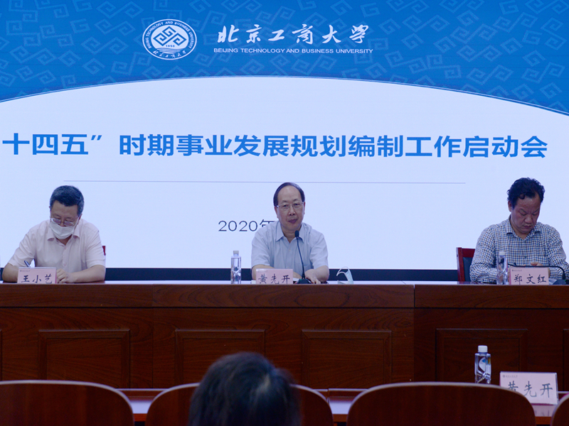 發展規劃處處長王小藝從主要任務、組織機構、規劃體系、編制要求、推進步驟、進度安排、保障機制等方面介紹了學校“十四五”時期事業發展規劃編制工作方案,對學校“1+9+17”規劃體系思路,即“1”個總體規劃、“9”個專項規劃、“17”個院(部)規劃進行了說明,并結合學校發展實際,對《北京工商大學2025行動計劃》修訂調整方案進行了布置。