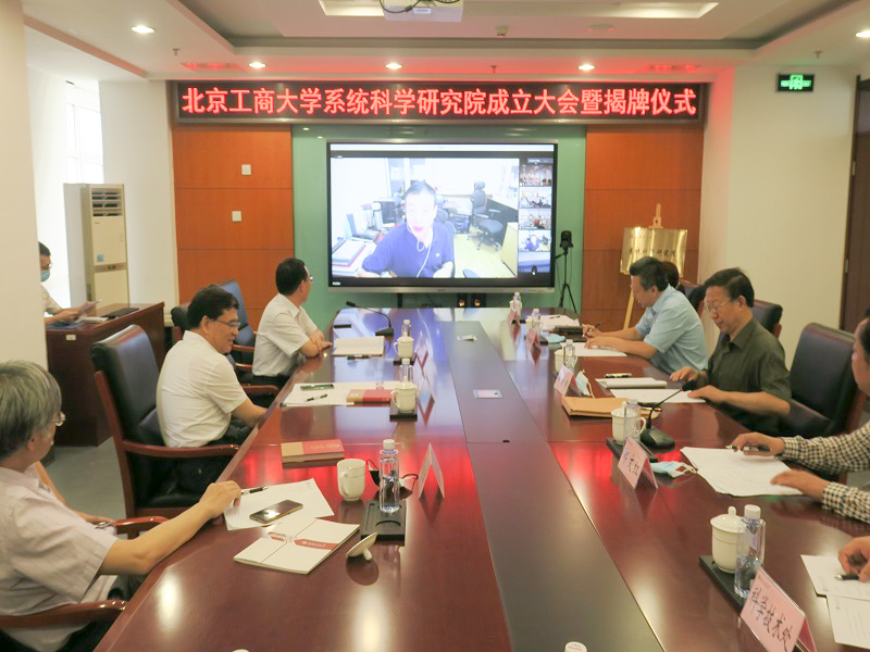 7月26日,我校系統科學研究院成立會議暨揭牌儀式在阜成路校區舉行。校長孫寶國院士、副校長鄭文紅出席會議。中國科學院數學與系統科學研究院郭雷院士、張紀峰研究員,北京交通大學高自友教授應邀出席會議。發展規劃處、研究生院、科技處、人工智能學院的負責人及教師代表參加會議。會議還邀請到北京師范大學狄增如教授、中國科學院數學與系統科學研究院楊曉光研究員等系統科學領域知名專家線上參會。會議由鄭文紅副校長主持。