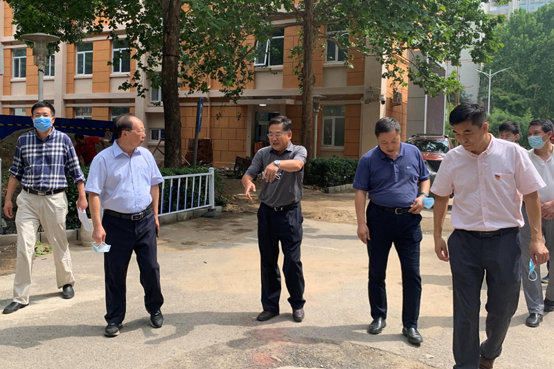 8月14日下午,校黨委書記黃先開、黨委副書記張德玉、副校長方德英在阜成路校區檢查了教二樓、教三樓、西區食堂綜合樓配樓、主路路面更新等阜成路校區環境提升工程,聽取了公共事務處黨總支書記張曉磊、處長韓軍對目前開工11項工程情況的匯報,慰問參與施工單位、監理單位、物業公司和公共事務處假期工作的職工。學校校辦主任祝鈞陪同檢查。