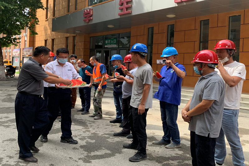 黃先開、張德玉、方德英等校領導親切慰問一線工作人員。一線工作人員們表示,感謝校領導的關心和支持,將力克難關,保質、保量、如期完成學校建設任務。
