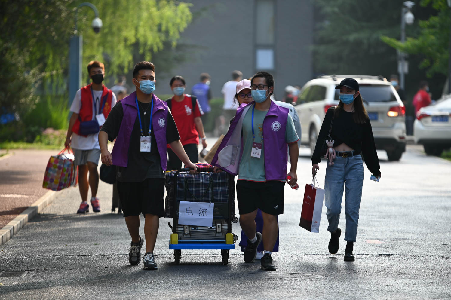晨曦初露,迎新志愿者們?cè)缭绲群蛟诘罔F站前,熱情迎接新生們的到來(lái)。在疫情防控常態(tài)化要求下,送新生的車(chē)輛和家長(zhǎng)親友不能入校,2020級(jí)新生們獨(dú)自報(bào)到,800余名志愿者們變身“行李搬運(yùn)工”、“校園引路人”,穿梭于車(chē)站、校門(mén)、報(bào)到地點(diǎn)與宿舍之間,接站志愿者、學(xué)院志愿者無(wú)縫銜接,全程幫助新生順利入校,忙碌的身影構(gòu)成了迎新現(xiàn)場(chǎng)最靚麗的風(fēng)景線(xiàn)。一名經(jīng)濟(jì)學(xué)院的新生感嘆道:“入校前擔(dān)心沒(méi)有家長(zhǎng)幫忙,獨(dú)自搬運(yùn)行李和報(bào)到會(huì)手忙腳亂,到了迎新現(xiàn)場(chǎng)發(fā)現(xiàn)從入校開(kāi)始就有學(xué)長(zhǎng)學(xué)姐們來(lái)幫忙,幫助大家搬運(yùn)行李、答疑解惑,入校第一天就讓我感受到北工商是一個(gè)十分有愛(ài)溫暖的大家庭。”