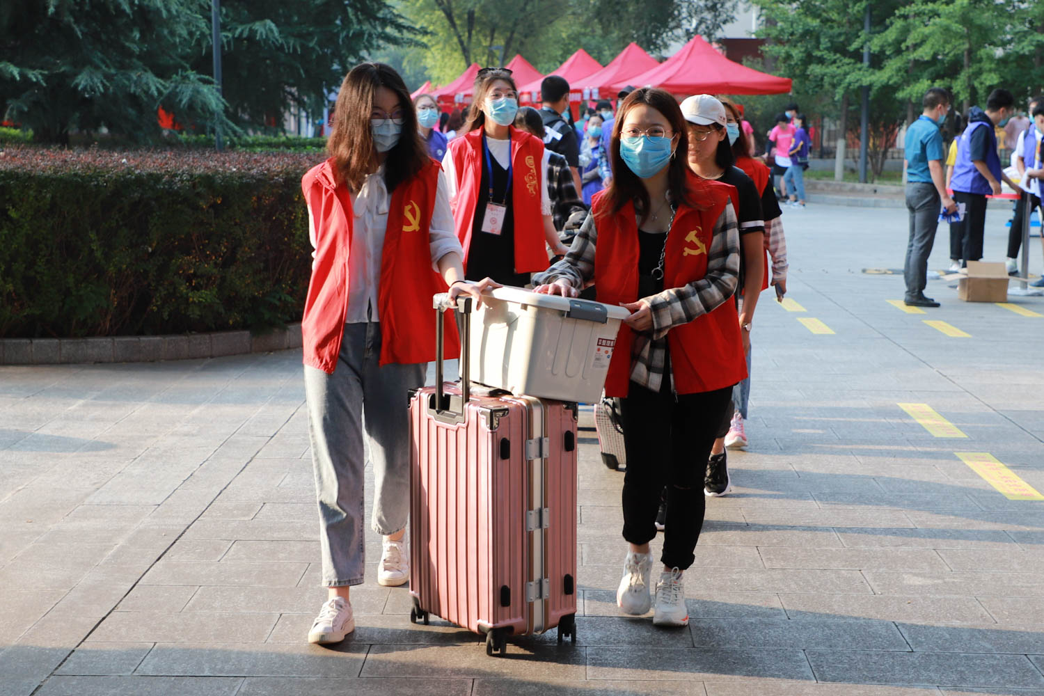 行李消殺、出示入校碼、健康碼、測(cè)量體溫……迎新現(xiàn)場(chǎng),新生在工作人員的引導(dǎo)下,嚴(yán)格按照步驟和要求有序入校。學(xué)校為每位新生準(zhǔn)備了裝有防疫物品的“愛(ài)心包”,幫助新生自覺(jué)落實(shí)校園防疫要求。為確保新生安全順利入校,學(xué)校各部門(mén)進(jìn)行了精心的部署。開(kāi)學(xué)前,學(xué)校建立了本科生健康監(jiān)測(cè)臺(tái)賬,自8月30日起,由班主任、輔導(dǎo)員組織新生每天在班級(jí)群中健康打卡,落實(shí)“日?qǐng)?bào)告”制度。新生通過(guò)“掌上北工商”APP提前提交相關(guān)材料,合格后系統(tǒng)自動(dòng)生成入校碼,入校時(shí)掃描成功即可順利進(jìn)入校園。新生通過(guò)“智慧校園”系統(tǒng),完成入校資料填寫(xiě),查詢(xún)學(xué)校相關(guān)情況資料等。