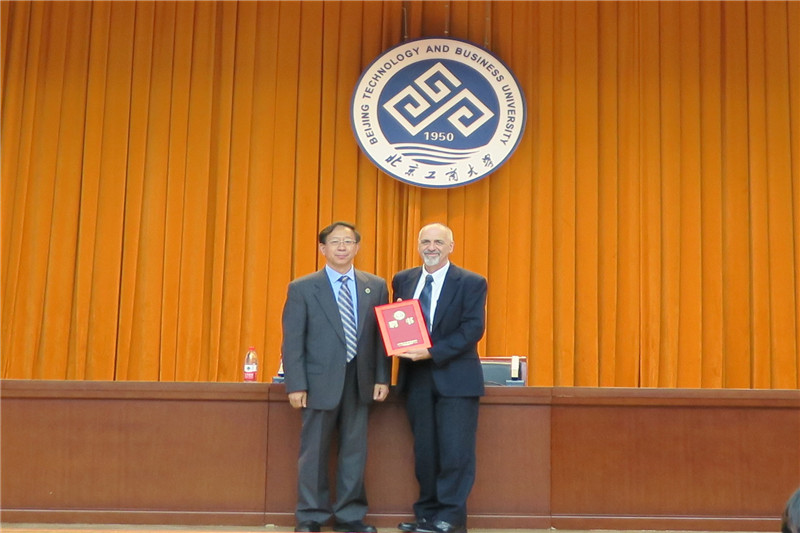 校長孫寶國院士為斯彼克曼教授頒發了聘書,聘請斯彼克曼教授為北京工商大學客座教授。斯彼克曼教授是中國科學院外籍院士、美國科學院外籍院士、英國皇家學會院士、歐洲科學院院士、美國科學促進會會士,能量代謝研究領域的國際知名學者。
