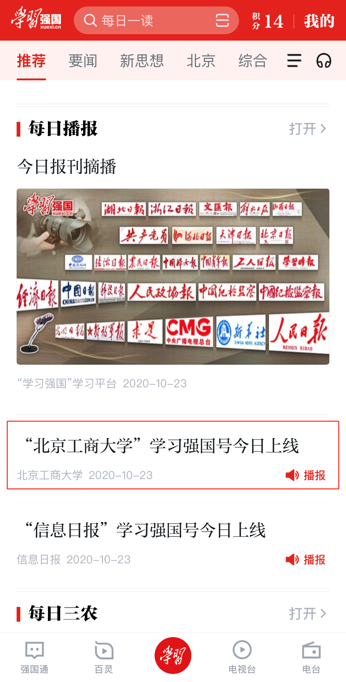 “北京工商大學”學習強國號將通過圖文、音視頻等形式,提供具有北工商特色、充滿愛黨愛國強音的精神食糧。