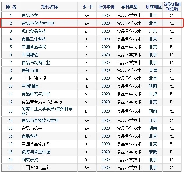 近日,RCCSE《中國學(xué)術(shù)期刊評價(jià)研究報(bào)告》(第6版)正式發(fā)布,我校主辦的《食品科學(xué)技術(shù)學(xué)報(bào)》被評為“RCCSE中國權(quán)威學(xué)術(shù)期刊(A+)”。在食品科學(xué)技術(shù)學(xué)科的51本中文期刊中,僅有3本期刊入選“權(quán)威期刊”(A+),《食品科學(xué)技術(shù)學(xué)報(bào)》排名第2位。