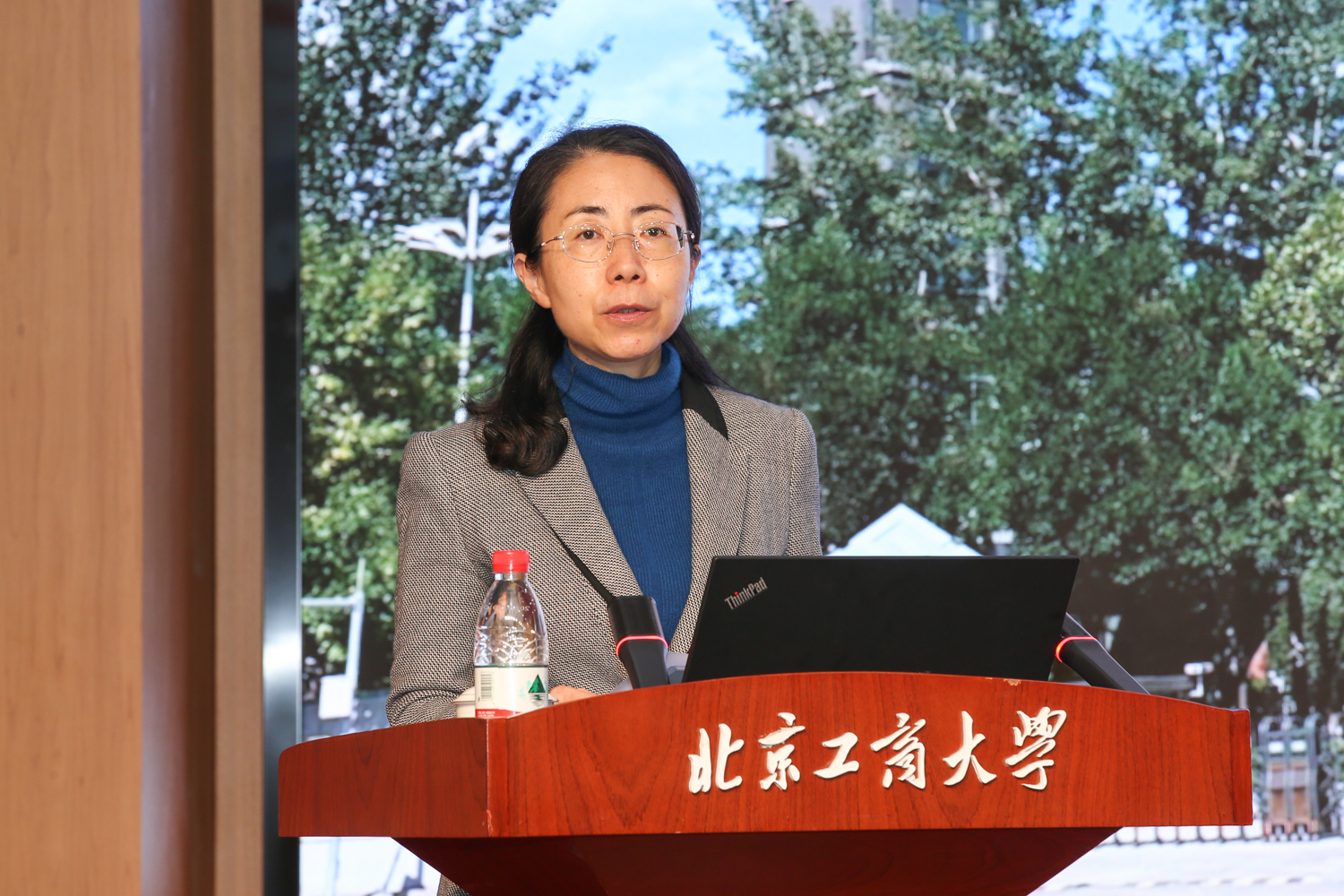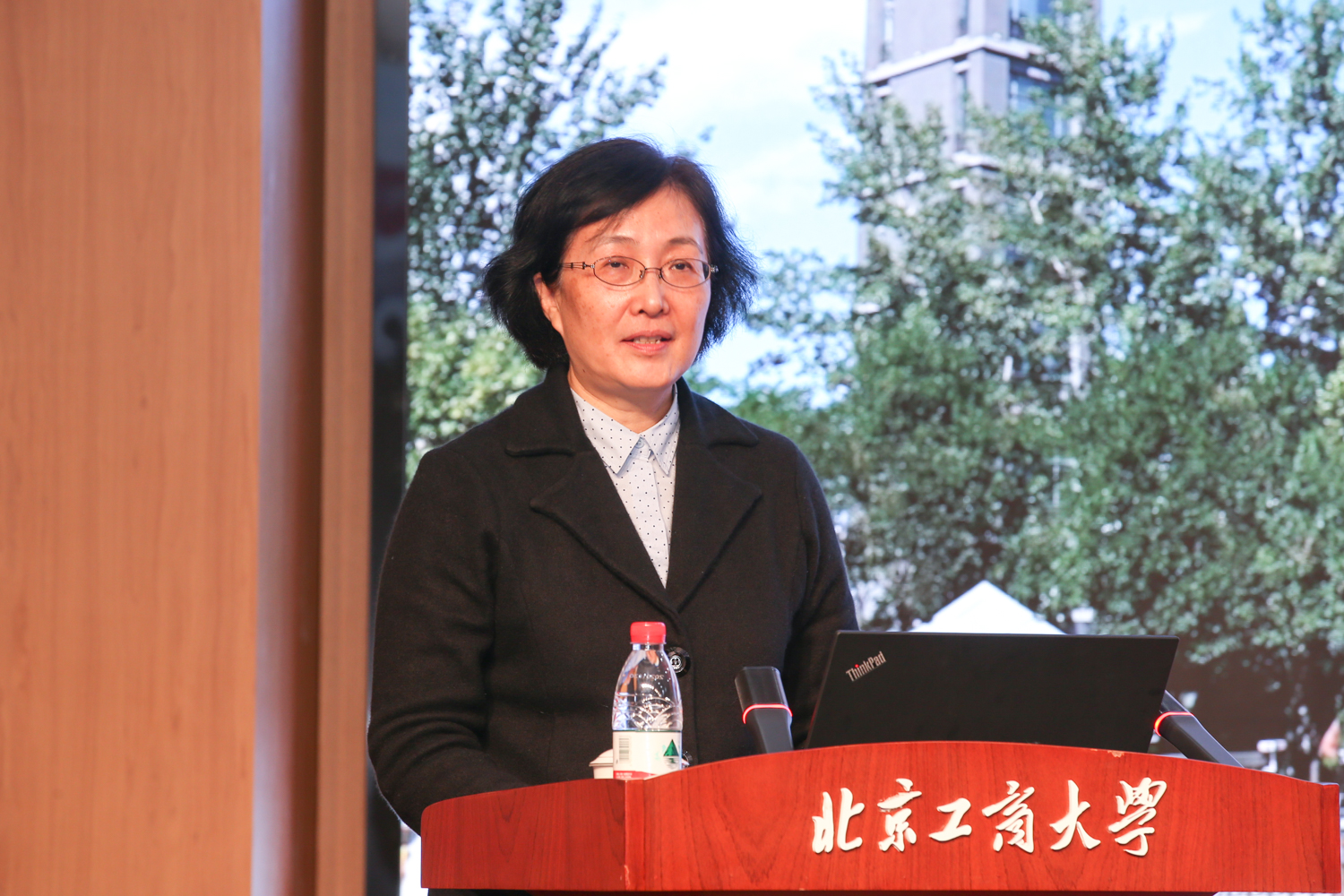 嘉賓聯絡員代表畢平平在發言中回顧了重要嘉賓接待服務工作的點點滴滴。她談到,聯絡接待任務圓滿完成的背后,是一代代北工商教師隊伍凝聚的敬業奉獻精神,這為我們提供了強大的支撐。聯絡員作為教師隊伍的縮影,在長時間、高負荷的服務工作中,展現出了追求卓越、吃苦耐勞、無私奉獻、團結協作、顧全大局的工作作風,體現出新時代北工商人的責任和擔當。