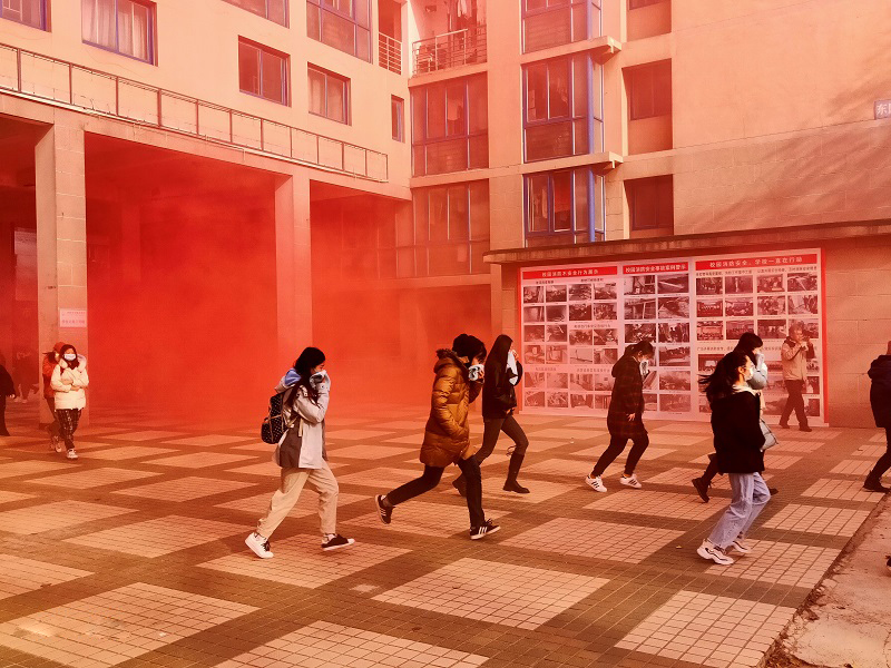 11月25日,“演習(xí)開(kāi)始!”隨著一聲令下,阜成路校區(qū)防火疏散演習(xí)正式拉開(kāi)帷幕。在校新生包括本科生、研究生、留學(xué)生以及維修、食堂、物業(yè)從業(yè)人員共500余人參加了演習(xí)。北京市公安局內(nèi)保單位保衛(wèi)局文保支隊(duì)副中隊(duì)長(zhǎng)李則峰,甘家口派出所警官王高波,甘家口街道辦事處焦曉會(huì)、孟杰等應(yīng)邀出席觀摩,學(xué)校防火委員成員單位領(lǐng)導(dǎo)參加活動(dòng)。
