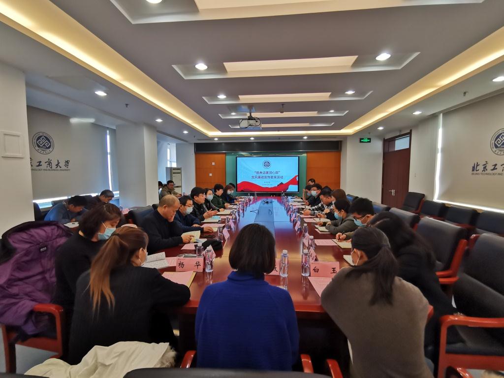 為強(qiáng)化黨風(fēng)廉政建設(shè),深化全面從嚴(yán)治黨,一體推進(jìn)不敢腐、不能腐、不想腐,12月10日,機(jī)關(guān)黨委圍繞“牢記初心使命、強(qiáng)化紀(jì)律作風(fēng)、潛心立德樹人”主題,開展“據(jù)典話廉潤心田”黨風(fēng)廉政宣傳教育活動,邀請了機(jī)關(guān)近兩年新提任的22名處級干部參加。學(xué)校黨委副書記董竹娟出席宣教活動,活動由機(jī)關(guān)黨委常務(wù)副書記鄭喜姣主持。