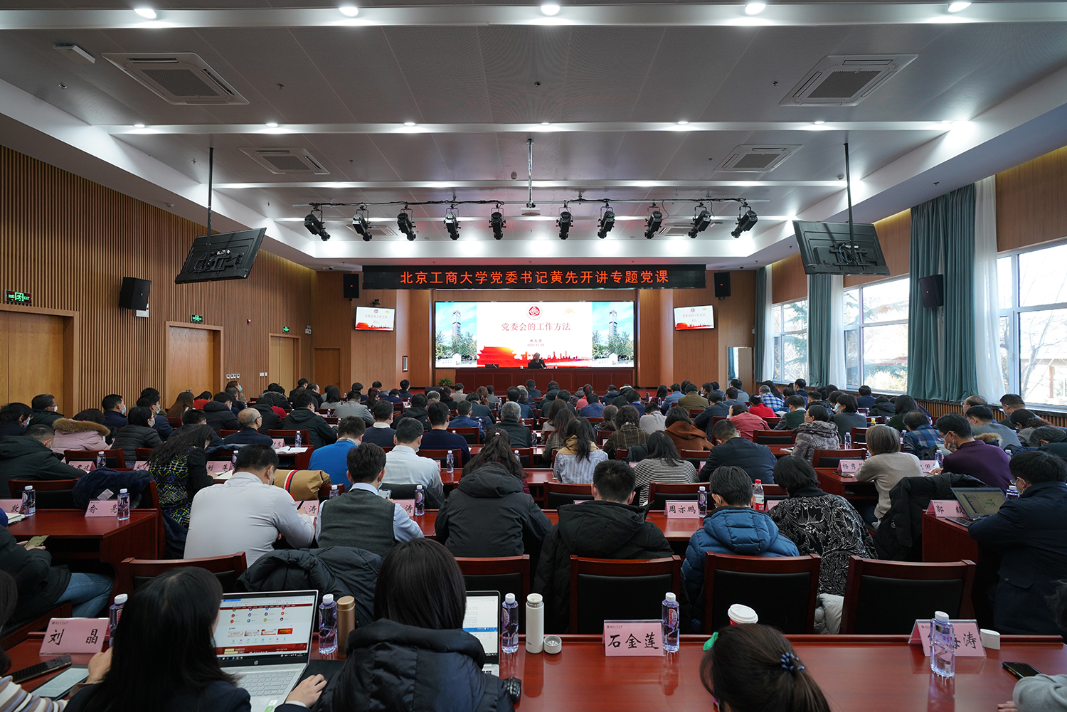 為學習貫徹習近平總書記重要批示精神,進一步加強學校各級黨組織領導班子建設,12月25日,學校黨委書記黃先開以“黨委會的工作方法”為主題講授專題黨課。全體中層干部、教工黨支部書記、學生黨支部理論導師、專職組織員參加黨課學習。黨課由學校黨委副書記張德玉主持。