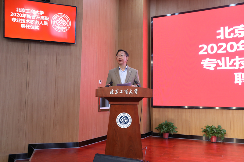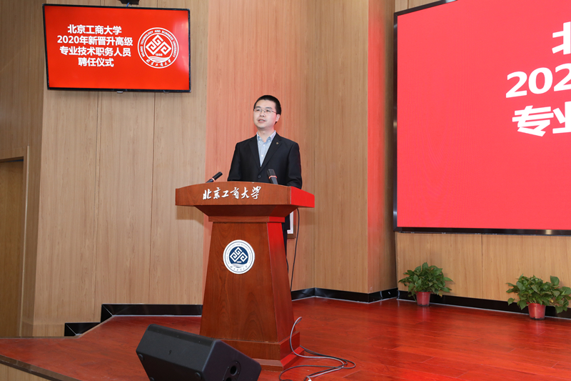 輕工科學(xué)技術(shù)學(xué)院楊紹祥、經(jīng)濟(jì)學(xué)院王愛萍分別代表受聘教授、副教授發(fā)言。他們回顧了在學(xué)校的成長歷程,感恩學(xué)校提供的平臺,感謝領(lǐng)導(dǎo)、同事們的關(guān)心和支持,并表示,面對學(xué)校高水平研究型大學(xué)的發(fā)展目標(biāo),要在人才培養(yǎng)與學(xué)術(shù)研究上確立更高的目標(biāo)。楊紹祥談到,要發(fā)揚(yáng)“三種牛”精神,以此次聘任為新的起點,保持慎終如始、戒驕戒躁的清醒頭腦,保持不畏艱險、銳意進(jìn)取的奮斗韌勁,繼續(xù)為北工商建設(shè)高水平研究型大學(xué)貢獻(xiàn)力量。王愛萍提出,要堅定理想信念,以“愛”育人;堅持腳踏實地,扎實鉆研;堅守家國情懷,回饋社會,將個人的發(fā)展與學(xué)科發(fā)展、人才培養(yǎng)工作有機(jī)結(jié)合起來。