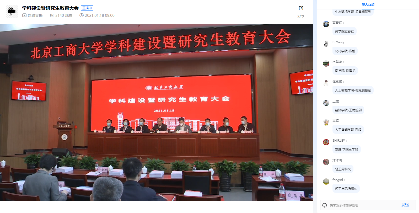為深入貫徹習近平總書記關于研究生教育工作的重要指示和黨的十九屆五中全會精神,全面落實全國研究生教育會議精神,努力構建我校學科和研究生教育新格局,1月18日,學校隆重召開學科建設暨研究生教育大會。會議采取線下和線上同步直播方式進行。全體校領導、中層正職、學科負責人和研究生導師代表等70余人參加會議。各學院主管學科和研究生教育副院長、研究生導師、研究生教學秘書等660余人線上參會。黨委書記黃先開,黨委副書記、校長孫寶國分別主持開幕式和閉幕式。