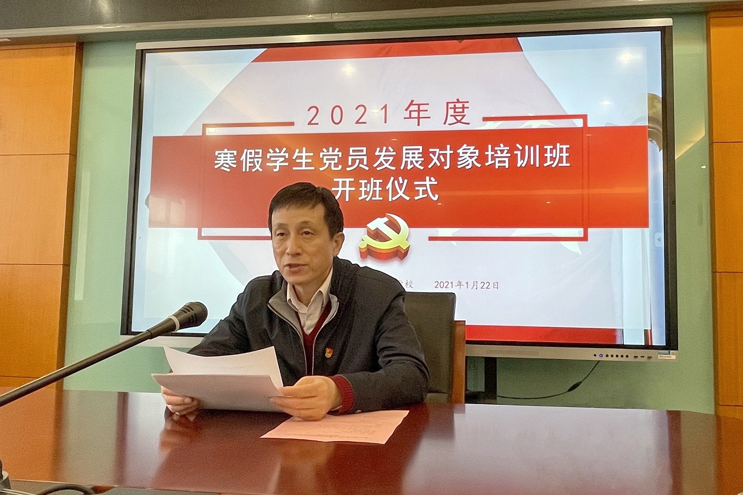 1月22日,學(xué)校舉行2021年度寒假學(xué)生黨員發(fā)展對(duì)象培訓(xùn)班開班儀式。學(xué)校黨委副書記王偉出席儀式并講話。研究生工作部部長徐丹丹,學(xué)生工作部部長呂良、副部長蓋曉慶參加儀式。儀式線上同步直播,各學(xué)院黨委副書記、黨校負(fù)責(zé)老師及765名學(xué)員線上參會(huì)。儀式由黨委組織部部長武晶晶主持。
